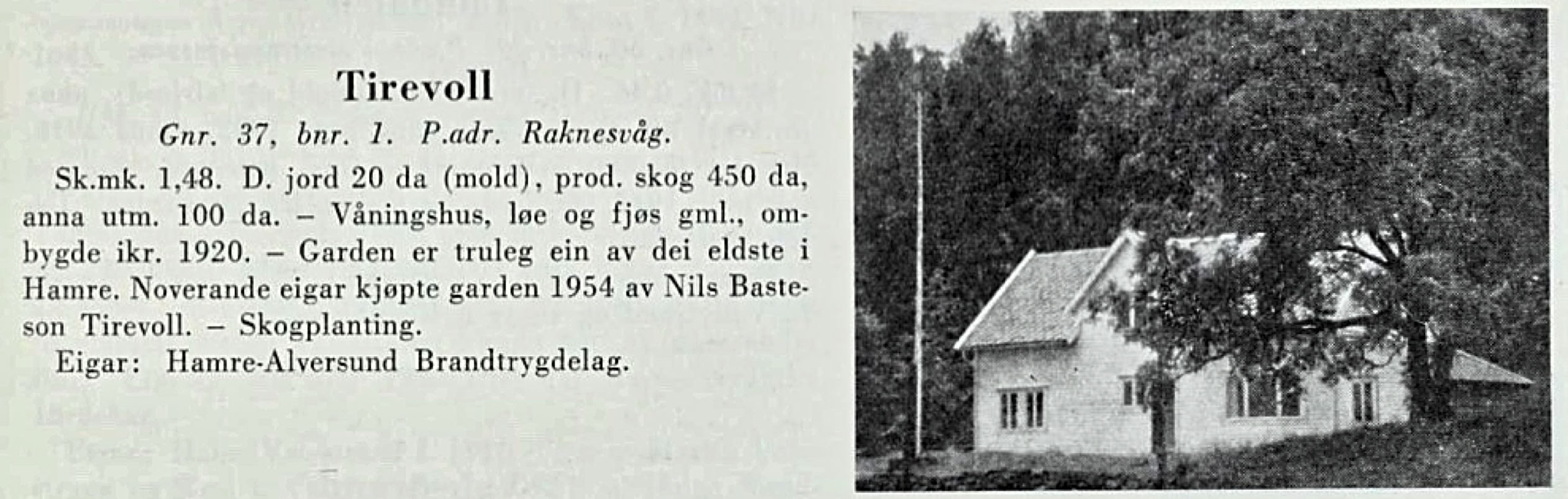 Presentasjon av Tirevoll i bokserien «Norske Gardsbruk» utgjeven 1964.